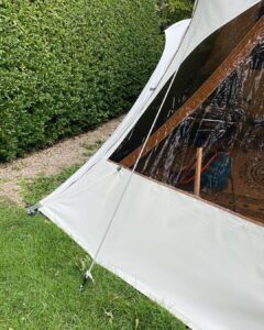 Achten Sie darauf, dass Ihr Holtkamper rundum fest mit Heringen abgespannt ist.