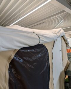 Rollen Sie das Vordach auf (am einfachsten mit zwei Personen).