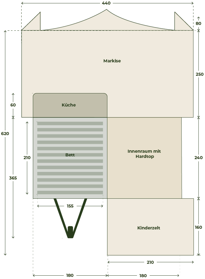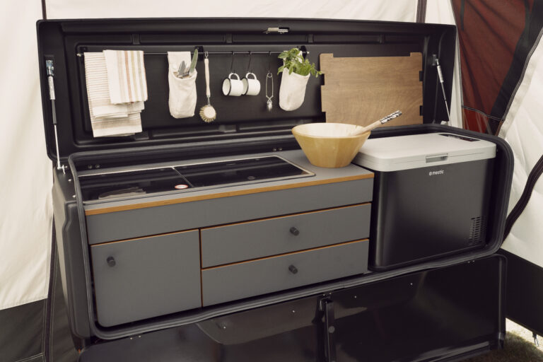 Dank der durchdachten Raumaufteilung und des großzügigen Wohnbereichs campen Sie komfortabel zu zweit oder mit der ganzen Familie. Mit dem optionalen Kinderzelt schaffen Sie im Handumdrehen zusätzliche Schlafplätze.