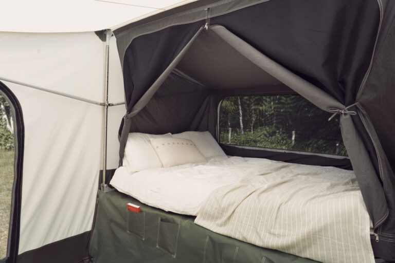Das verdunkelnde Innenzelt sorgt für optimalen Schlaf – auch in den frühen Morgenstunden. Die großzügige Kaltschaummatratze (155 x 210 cm) auf Lattenrost bietet Schlafkomfort wie zu Hause.